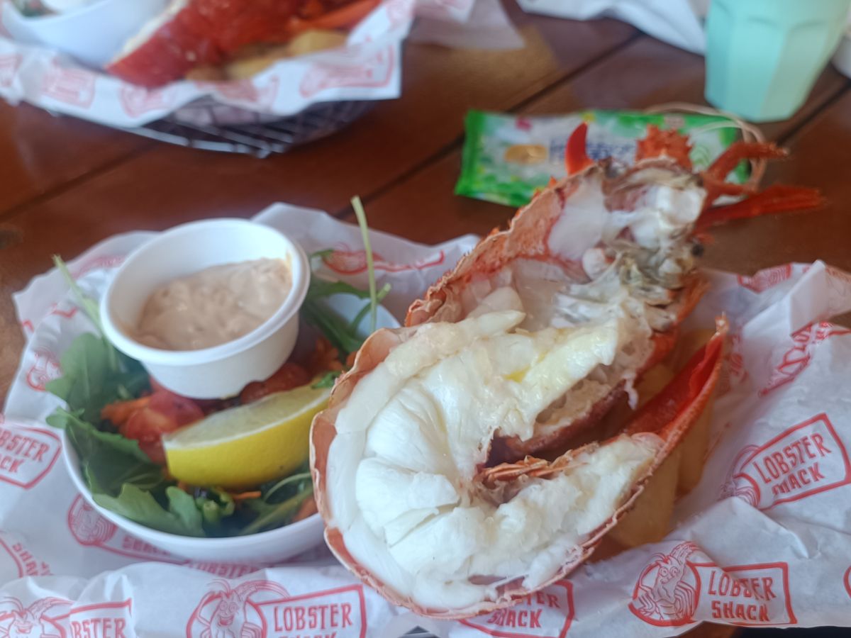 昼食はロブスターを選択しましたが、フィッシュ&チップスの方が美味しそうでした。