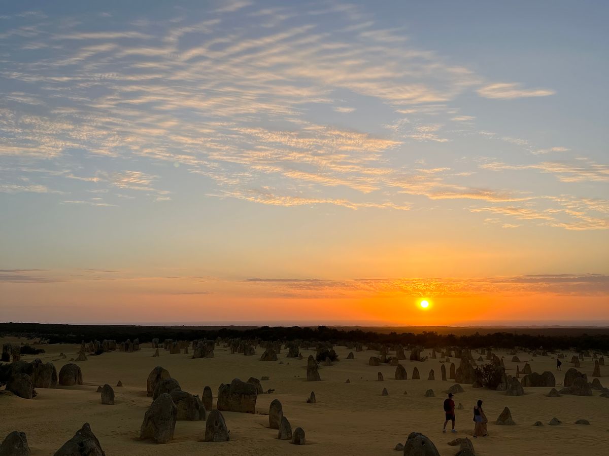ピナクルズの美しい夕日、夕飯後に星空鑑賞、足がないとパースから訪れるのは難しいのでこのようなツアーに参加することができてよかったです。ピナクルズは風がすごく、服や持ち物が砂だらけになったのでそこだけ注意が必要かと思います。
