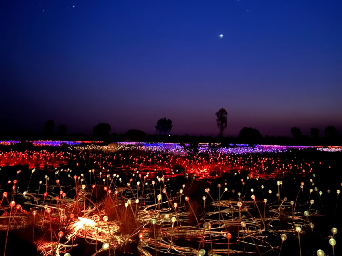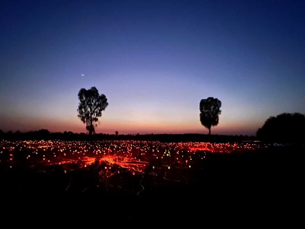 ガイドの方の手持ちの投光器を目印にイベントの会場まで連れられて行くと、真っ暗な地平線から色とりどりの光の粒が現れ、広大なイルミネーションを見ることができます。想像していた倍以上の広さと光の数に圧倒されました。