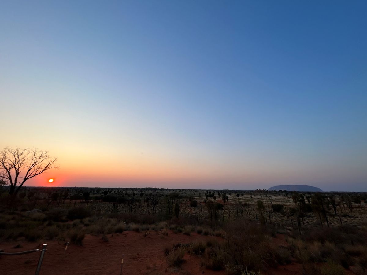 太陽はウルルの後ろに昇るのではなく、反対側に展望台があり、太陽に照らされていくウルルを見ます。
