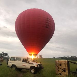 はじめて間近に見る気球は大迫力!残念ながら天気はあまりよくありませんでしたが、問題なく飛行。野生のカンガルーも見れました。