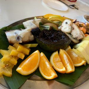 昼食ではパン、エビ、チキン、フルーツなどなどブッフェ形式で満足できました。