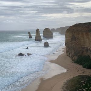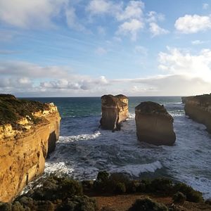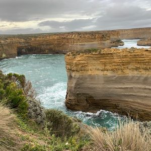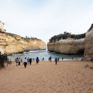 グレートオーシャンロードツアーを申し込むにあたって、日本語ガイドのツアーか、大型バスのツアーにするか非常に迷いました。説明を聞きたいが長時間マイクロバスの揺れに腰痛が出ないだろか?と。結果、音声ガイドがあれば要所で説明を受けれると思ってこのツアーを申し込みました。メルボルンについてからの予約確認に一苦労しました。印刷した予約確認書の電話番号は国番号から書いてあり現地入りしてからの番号ではありません。国番号を外し0を付けなければいけないのですね。当日は少し遅れて迎えのバスが来ました。集合場所には多くの人が集まっておりツアー別に並びます。日本語はほとんど通じません。現地集合なら不安だったかもと思いました。バスに乗るときに日本語音声ガイドをもらいました。係の人に従って席に着きます。日本人は私たちグループの他に1組いました。運転手さんがガイドをしながらバスは進みます。二階建てバスではなかったけれど座りごこちはよかったです。走っていると途中で音声ガイドが入ります。初めは4個(グループ4人で参加しました)とも正常に作動していましたが最初の二回だけ作動して後は聞こえなくなったり突然復活したり、また途中から、片耳だけしか聞こえない状態でした。音声ガイドがあるからこのツアーを選んだのに最後まで聞き取れないなんて、がっかりでした。運転手さんはとても感じのいい人で休憩時間もわかりやく説明してくれました。壮大な景色は圧巻です。バスの右側でも左側でもそれぞれ良いところがあり特に左側がいいとはかんじませんでした。ランチの時間もじゅうぶんにあり、のんびりと景色をたのしめました。帰りはホテル近くの駅前で降ろしてもらえました。1日がかりのツアーでした。次の日も観光をして元気に過ごせたので大型バスにして正解だったと思います。