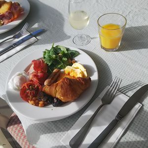 ブドウ畑を飛び交うインコを眺めながら美味しいクロワッサンやベーコン、スクランブルエッグなどを食べ、絞りたてのオレンジジュースも飲むことができます。