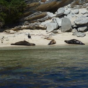 バスでピックアップ後、エリザベスキーから船でロットネスト島へ。持っているバウチャーはチケット売り場で各自船とアドベンチャーツアーのチケットに交換しなければなりません。ロットネスト島に着いた場所から少し前に歩いたところに、アドベンチャーツアーのジェッティの発着場があります。この場所の説明があったのかもしれませんが、聞き取れなかったので、少し心配になりました。ジェッティが出るまで少し時間があるので、トイレに行く時間はあります。島一周のアドベンチャーツアーは最高におもしろかったです。オットセイの写真はハウジングをつけて撮りました。防水でなければかなり危ないです。座る場所によっては、カッパをつけるので服はともかく顔はバシャバシャ濡れます。ツアー後、ランチを食べ、レンタサイクルでクォッカを探したり景色を楽しんだりしました。クォッカポイントを中心にクォッカを見つけることができました。かわいかった!!