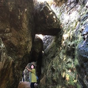 森の木が変わると匂いが変わるのを感じたり、森の成り立ちやそこに生息する動植物の生態を聞けたり、落ちてきた岩や裂けた岩が作る自然のトンネルを抜けたり、運動不足の身にはちょっとこたえましたが、森林浴もできいい運動にもなりました。