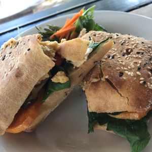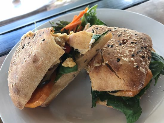 ランチもボリュームのあるチキンサラダラップを頂きました。