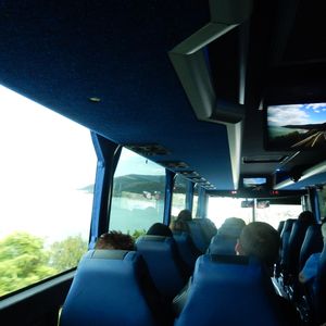 一人で参加したのですが、運転手兼ガイドさんから助手席にどうぞと言われました。長いドライブでしたが、フロンドガラスも含めた大きな窓から外の景色を眺めることができ、また運転手さんとも話すことができて楽しかったです。