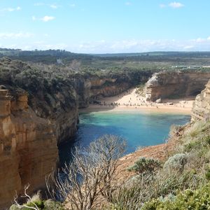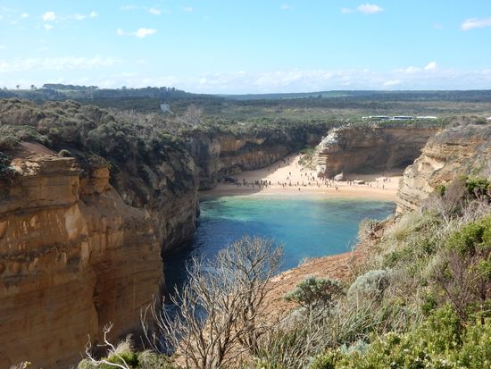 続いてローチ・アード・ジョージ(ロック・アード・ゴージ)へ。階段を降りて砂浜へおり洞窟を見る。その後海岸沿いのグレート・オーシャンロードをメルボルンへ。ユーロンからアポロ・ベイに向かう途中の山道で昼食。そして、ケネット川付近の森で野生コアラ観察、ローン、メモリアル・アーチ(手前に止まったので帰還兵の像は見えず残念)、ゴルフ場(アングルシー?)での野生カンガルー観察、ベルズビーチ、ジーロングを経由してメルボルンへ。