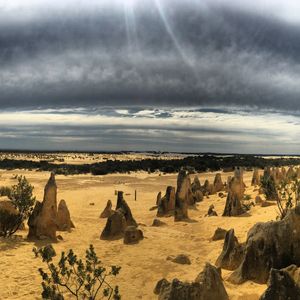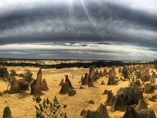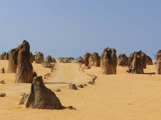 次にピナクルズ観光です。1時間ほど写真撮影や散策を楽しみました。ピナクルズは写真で見た通りの黄色い土と奇岩が広がり、運転手さんによるとこの辺りは白い砂の砂丘が多い中、ピナクルズ地帯だけは黄色い砂地で、その理由は解明できていないそうです。トトロに似た岩や面白い形をした奇岩が大小乱立しており、存分に記念撮影を楽しみました。