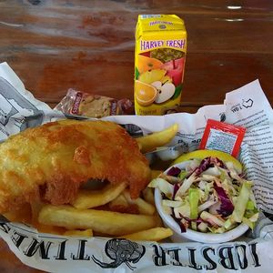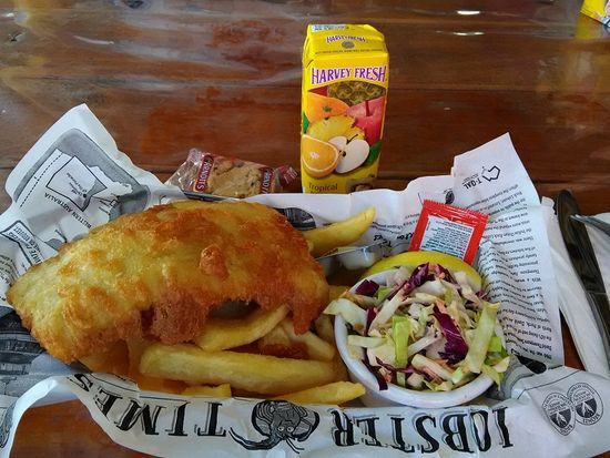ロブスター工場では工場内を軽く見学した後ランチを頂きます。追加料金で、通常のフィッシュアンドチップスからロブスターランチにアップグレードすることもできますが、フィッシュアンドチップスもカリっとしてボリュームもあり美味しかったです。