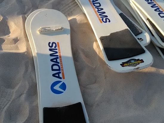 マイクロバスくらいの頑丈なバスに乗り換え砂丘を縦横無尽に走ります。途中何度か急な坂を一気に駆け降りるのでジェットコースターのような気分を味わえます。30分ほどドライブを楽しんだ後いよいよ砂丘すべりとなります。スノーボードのような板を借りて砂丘の頂上まで自力で登り一気に滑り降ります。運転手さんが簡単に滑り方をレクチャーしてくれます。なお、ツアーで一緒だった60代の男性も元気に体験されておりました。砂がサラサラしてとても気持ち良いですが、スニーカーの人は砂が入りこんで苦戦いていたようです。私は日本から100均のサンダルを持参しバスで履き替えました。