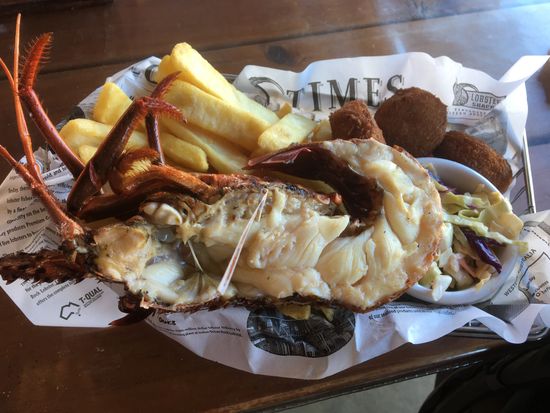 ランチタイムでは“ロブスターシャック”というロブスター工場見学が含まれ、西オーストラリアのロブスター水産業の社会見学ができる。ここでは+25ドルでフィッシュ&チップスからロブスーターランチにアップグレードできるが、フィッシュ&チップスがパース市内のものより格段おいしく、25ドルが惜しい人もそれなりに満足できる。ロブスターを食べ慣れていないので、おいしさを比較できないが、水揚げされてる工場のレストランなので鮮度は間違いない。ボリュームが満点なので、食べきれない人は思い切ってお持ち帰り用の箱をお願いしよう。