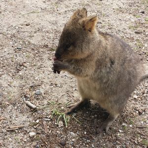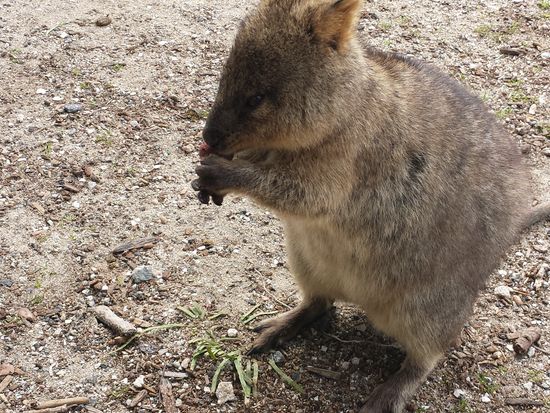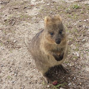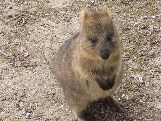 写真を撮ろうと近づくと、クオッカの方から来てくれます。