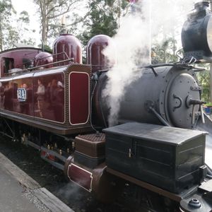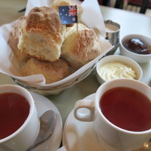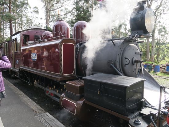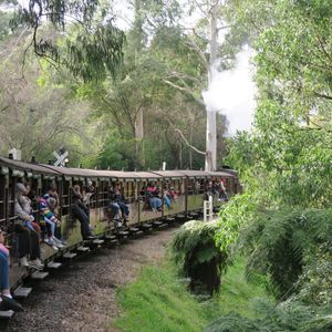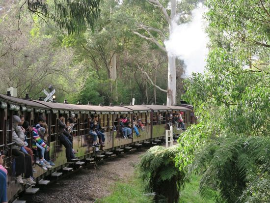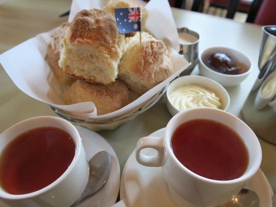 蒸気機関車に乗るのは初めて、しかも皆さんと箱乗り!7月のメルボルン、パッフィンビリー蒸気機関車に箱乗りは寒かったですが、巨大なジダの群生しているところを走り、風をきって乗るのはとても気持ちよかったですよ!蒸気が吹き上がると石炭の燃えカスのようなものが煙に混じって飛んできて、目に入り痛い思いもしましたが、いい思い出です。パッフィンビリー鉄道に乗る前に軽食でスコーンをいただきました。なかなかでしたよ!