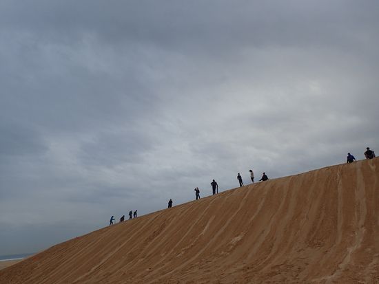 そして、最後にサンドボーディング。生憎の小雨でしたが、みんな小さなボードに脚をそろえて乗って何度も下っていました。晴れていたら、さらさらの砂をもっと堪能できたかも。