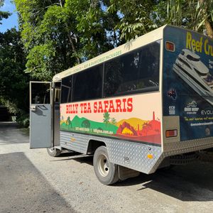 日本語のオーディオガイド付きということと、バスの窓が大きいというのも決め手でした。日本語オーディオガイドは自動的にその位置に来ると話し出します。歴史的な話が多く、直接ガイドさんの話も聴いてみたくて、使ったり使わなかったりでした。ポートダグラスでもピックアップしますが、ポートダグラスの街並みも見れて良かったです。モスマンゴージセンターは小雨でしたが、特に問題ありませんでした。デインツリーリバーは野生のワニがかなり見れて、感動しました。デインツリーの施設でのお昼はバスの中で肉が魚かを聞いてくれます。