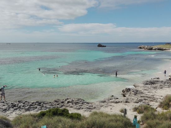 行きはホテル前にバスが迎えに来て、船着き場まで連れていってくれました。そこで日本人のガイドさんと合流しフェリーでロットネスト島に向かいました。私達が行った日は(たぶん)地元の家族連れも多くフェリーは満席でした。フェリーは片道1時間強乗っていましたが、その間にガイドさんからロットネスト島の歴史や島到着後の行動の説明などを聞きました。