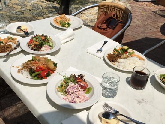 グループで来た場合には、そのグループで同じテーブルについていた様です。食事は各テーブル毎に順番に取りに向かい、混雑しない様にしていました。食事の内容は特殊な肉が用意されている以外、特に目立ったものは有りません。