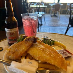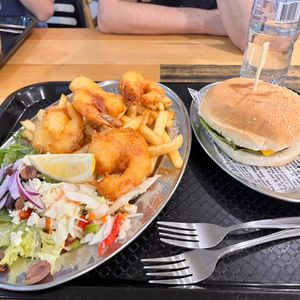 カウンターで食べ物飲み物を注文し、電子ベルをもらい、ベルが鳴ったら左奥のカウンターに取りに行くスタイルでした。