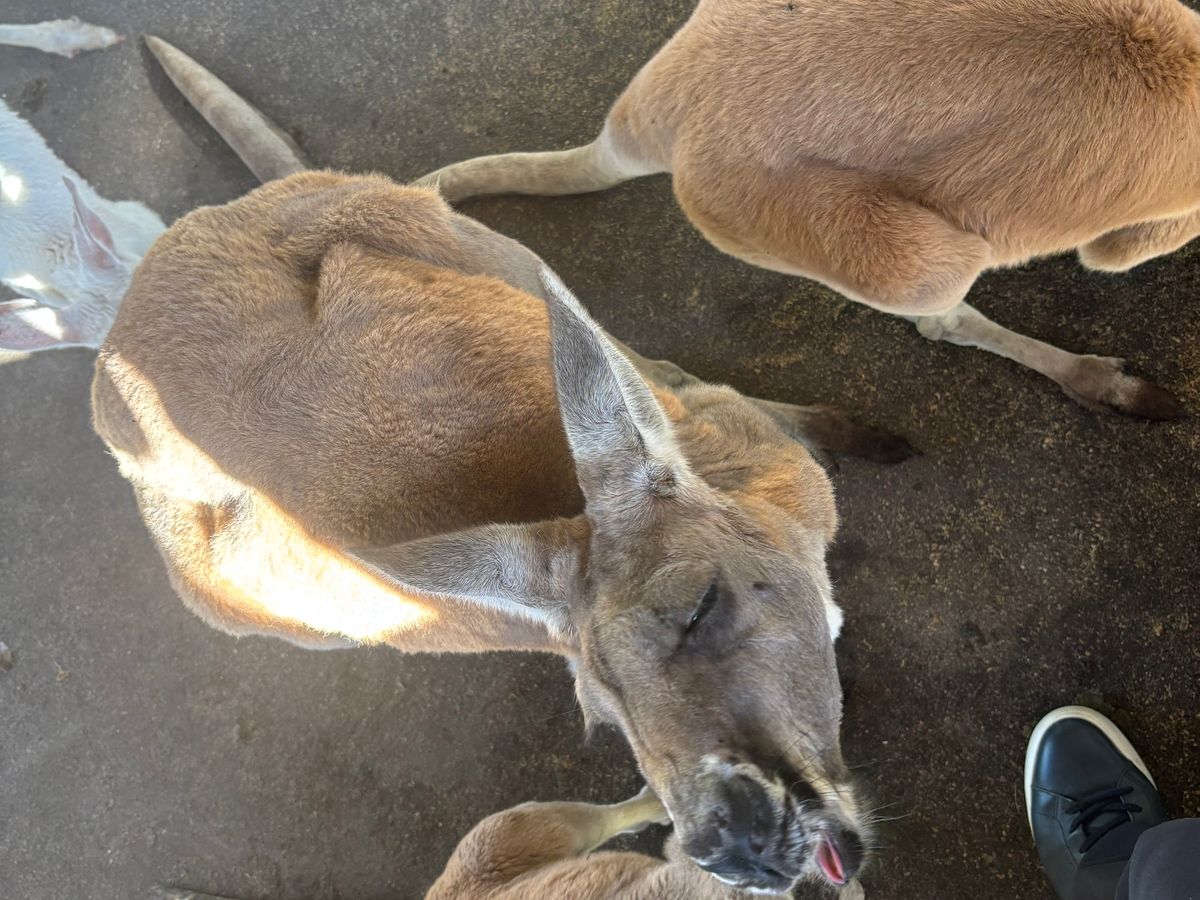 カバシャムワイルドライフパークでの、カンガルーへの餌やりも、とても楽しかったです。スタッフが「朝イチなのでカンガルーたちはお腹がへっています」と言っていましたが、本当にその通りで勢いよく食べてくれました。餌を手のひらにのせていたので、手がカンガルーの唾液でべちょべちょになりましたが良い思い出です。