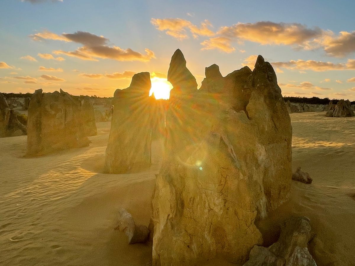 奇岩ピナクルズは、空の色の変化が素晴らしく、青からオレンジ、そしてピンクへと…