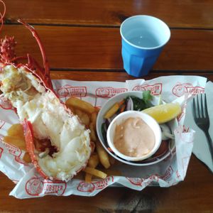 オイスターシャックでは、子供が食べたフィッシュ&チップスは衣がサクサク、大人はロブスターにアップグレードして大正解!美味しかった!