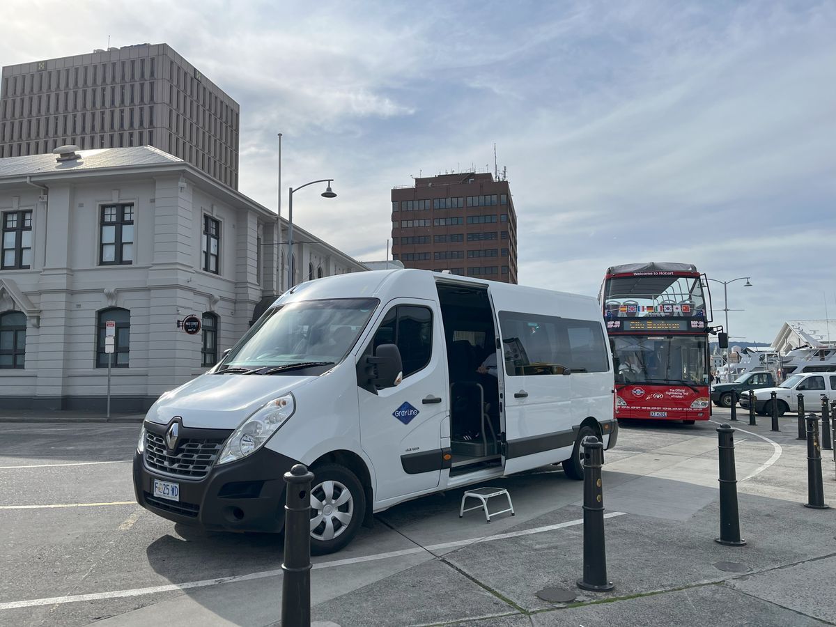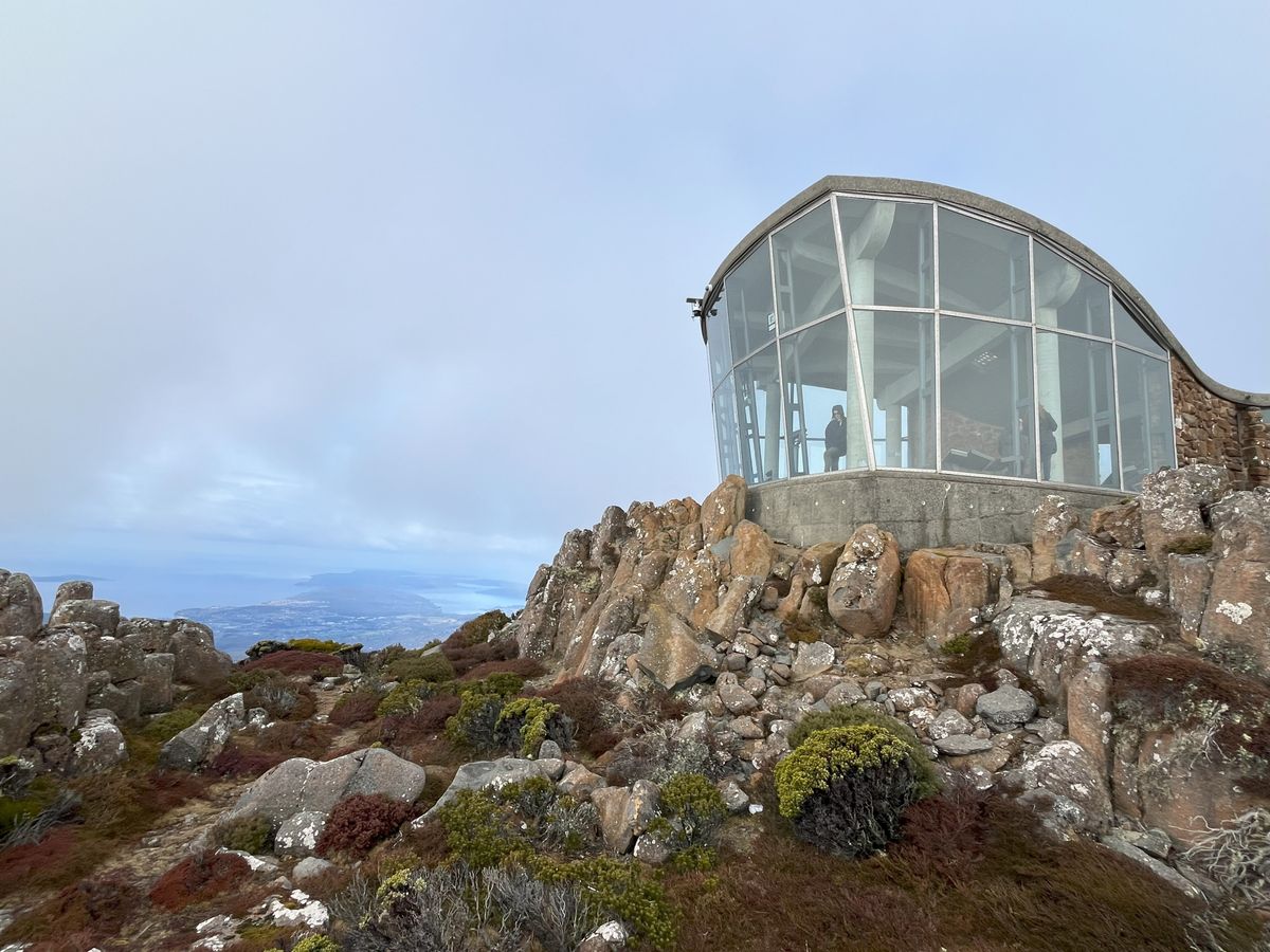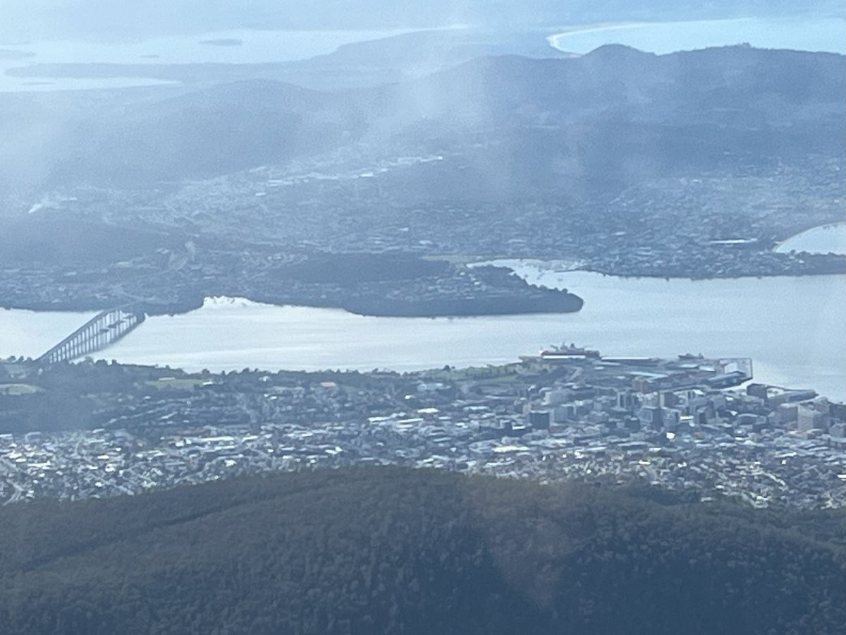 ツアーはまずウェリントン山の山頂に向かいます。街から山を見上げると山頂に雲がかかっていて心配していましたが、山頂につきと無事に雲の隙間からホバートの街並みを眺めることができました。ただし、山頂は寒く、防寒対策は必須です。ちなみに、この日は6℃でした。