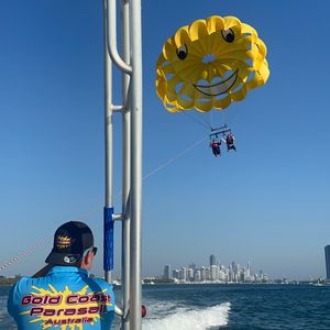 せっかくゴールドコーストに来たのでパラセーリングを体験。青空の下、海岸線を眺めながら空を飛ぶのは最高に気持ち良かった。
