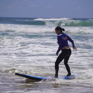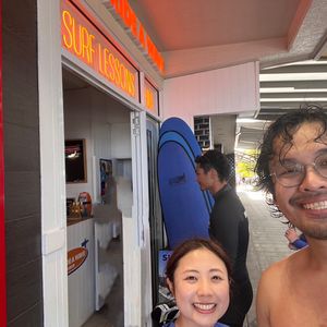 2人で海外は初めてで、全部英語でのレッスンだったので初めはとても不安がありました。レッスンしてくださるスタッフの方もとてもフレンドリーで優しく、ジェスチャーも交えながら理解できる単語を選んで説明してくれて分かりやすかったです。サーファーズパラダイスの波は高くて勢いもありましたが、手伝って貰いながら何回か立つことが出来ました。写真も一眼レフのカメラで沢山撮ってくれて、料金はかかりますが素敵な写真を見ながら旅の思い出を語ることができてとても良かったです。Gold Coastに来たら是非一度体験してみてください!
