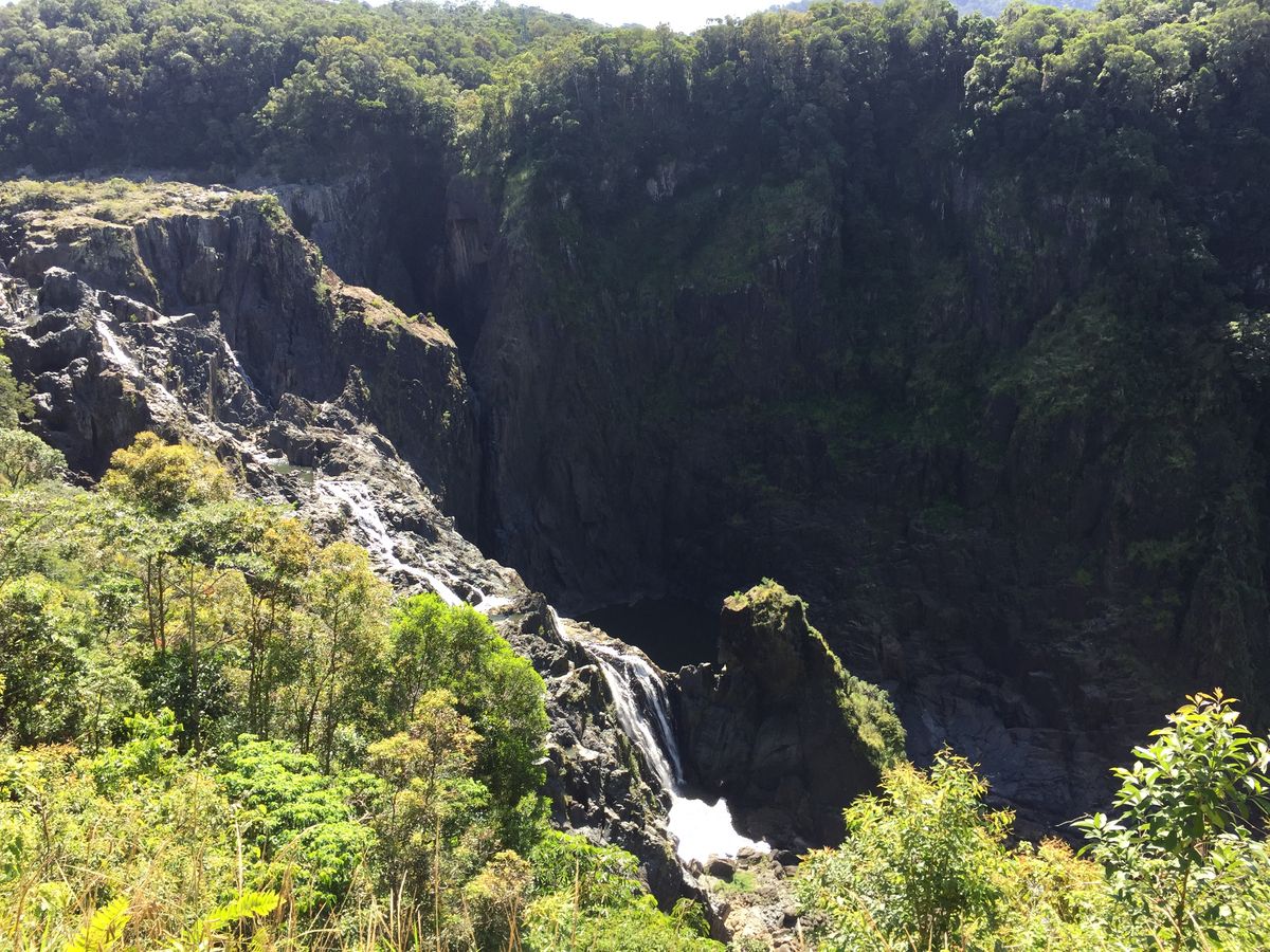 また、スタート地点にほど近い流れが緩やかな場所とゴール地点でユリシス(オオルリアゲハ)を2回、飛んでいるところを見ることができました。このユリシスは一日に3回見るとお金持ちになれるという天使の蝶と言われています。今回、まさか見ることはないと思っていただけに、つい興奮してしまいました。初日に訪れたキュランダ村アーミーダックツアー中に水辺で遠目に初めて1頭発見しました。このままでは終われないと思い、人工的に繁殖しているキュランダ蝶博物館に行きました。しかし、タイミングが悪かったのか飼育場では1頭も見ることができませんでした。