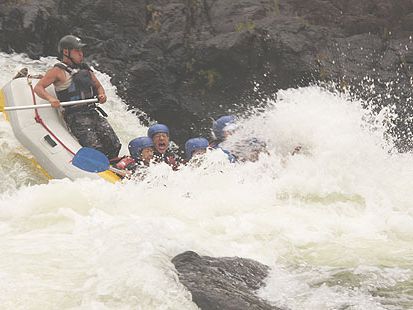 日本では、こんなスリルのあるラフティングは絶対させてもらえないので