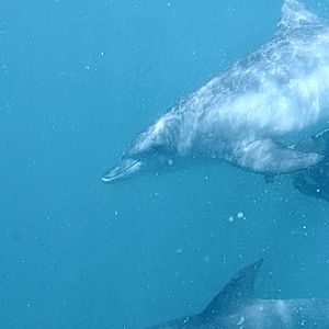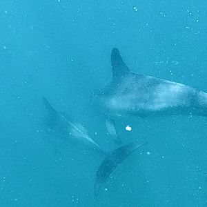 水深のある海で推進器を持つガイドさんにつながってイルカを見る経験は貴重でした。4回のダイブで2回イルカを見ることができ、一回はすぐそばをイルカが通りラッキーでした。船からもイルカが泳いでいる様子を見ることができイルカウォッチのツアーにこのダイブがあると考えてもいいかと思います。ダイブしている写真、帰るときに船の白波にイルカがついてきてジャンプする様子の写真も案内のページにあるといいと思います。船は全く揺れないので船酔いする家内が全くしませんでした。浅瀬でイルカに近ずくとは違い別の魅力があると思います。