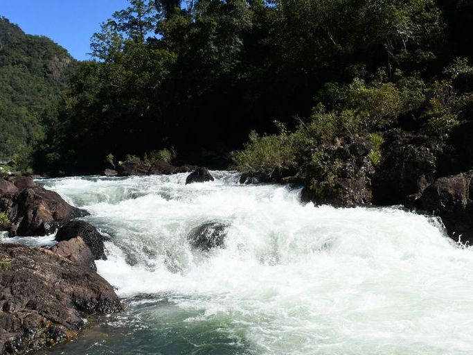 タリー川は岩が多く、テクニカルな川として世界的にも有名です。