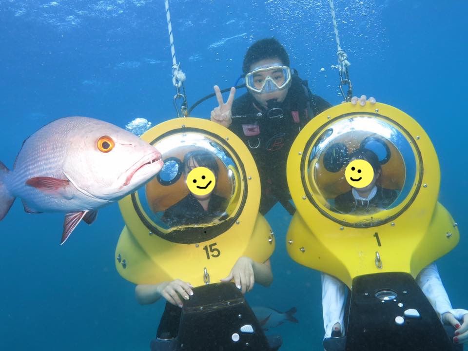 ダイビングができない私たちは選んで正解でした。船の中でシーウォークの同意書と時間を教えてもらい、島で遊んでから集合場所へ。少し小型船で海へでてシーウォーク。餌を近くでまいてくれるので目の前触れるほどの近さで綺麗な魚たちをみれました。また、これでもかというくらい写真をたくさんとってくれてあとから購入することもできました。写真は、全てのデータか一枚選べました。やる価値ありました!
