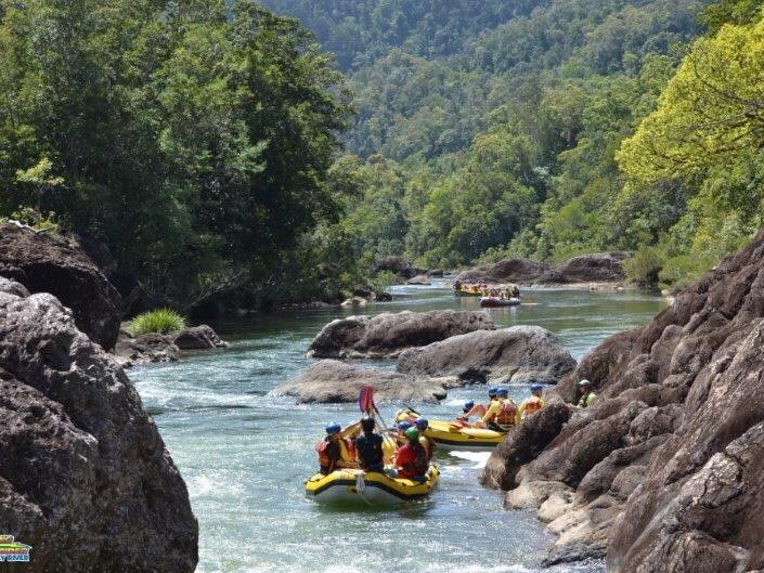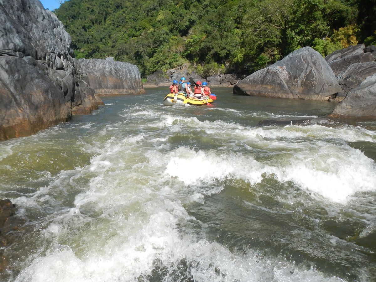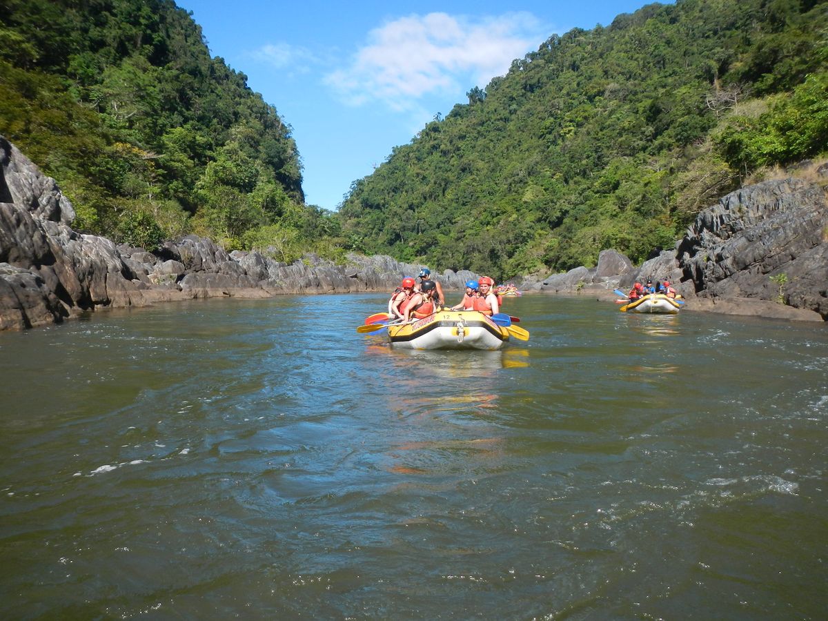 全日のアクティビティーが続き、少々疲れ気味だったので半日で参加できるバロン川ラフティングに参加しました。市内から20分程でスタート地点に到着。早速ラフティングスタート。流れが強いポイントも数か所ありましたが、基本的には緩やかな流れの中を下っていきます。ラフティング中にはBlue Butterflyを4匹も発見!まさか本当に見られるとは思っていなかったので、想定外のサプライズでした。ラフティングに参加するためには、濡れてもよい脱げない靴(ウォーターシューズ)が必要です。借りると$5なので、グレートバリアリーフ等にも行く予定があるのであれば事前に買っておくことをお勧めします。
