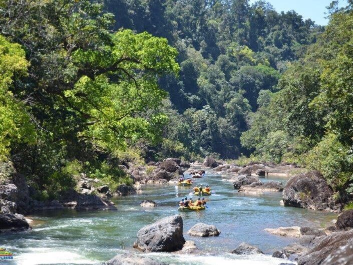 心配は杞憂に終わり逆に小雨がぱらついた熱帯雨林の中のラフティングで満喫出来ました。
