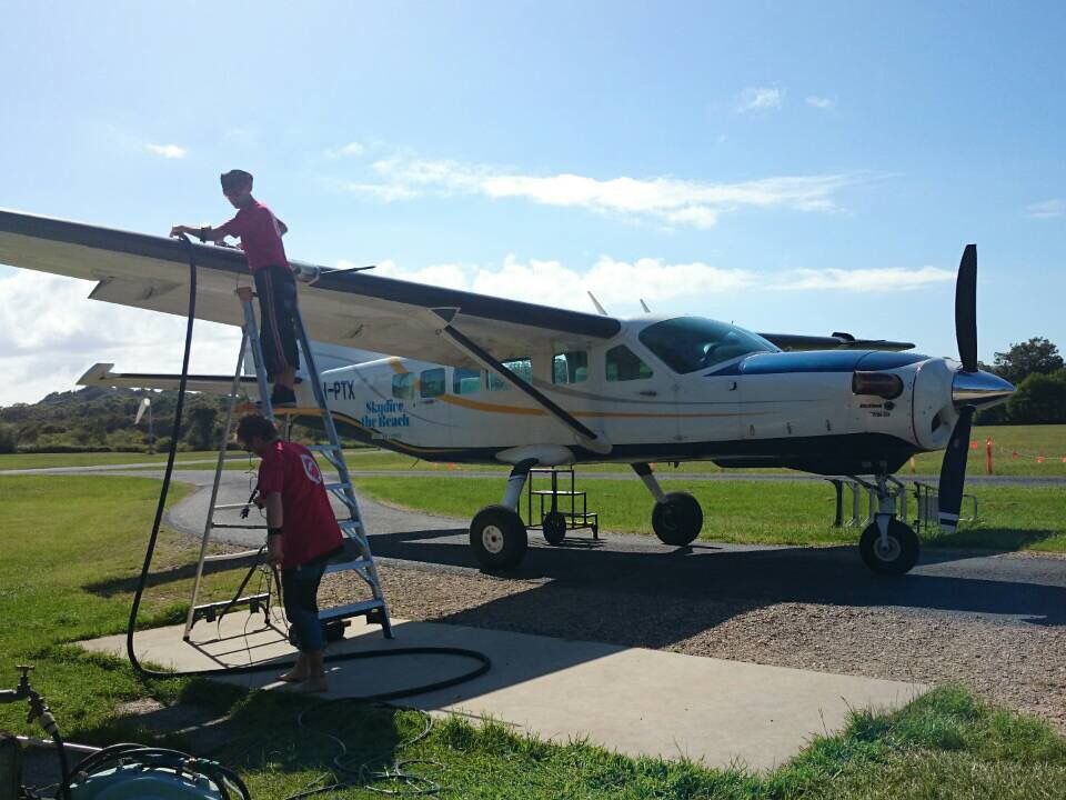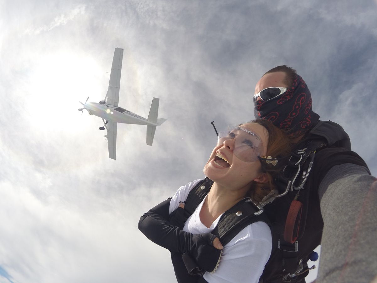 ダイビング自体はペアで一緒に飛んでくださる方がずっと盛り上げて下さり、飛ぶまで特に緊張なく過ごすことができました。カメラで頻繁に撮ってもらえるので、別途写真撮影のパッケージをつけることをオススメします(平日と週末で値段が違うので平日がオススメ)。装備をつけたり説明をうけたりと準備をした後車で飛行場へ。あれよあれよと乗り込まさせられ、飛び立つことに。10分ほど飛んだあと、順番に飛んでいきます。このとき揺れが結構激しいので、乗り物酔いする人は酔い止めを飲んでいたほうがいいかもしれません。