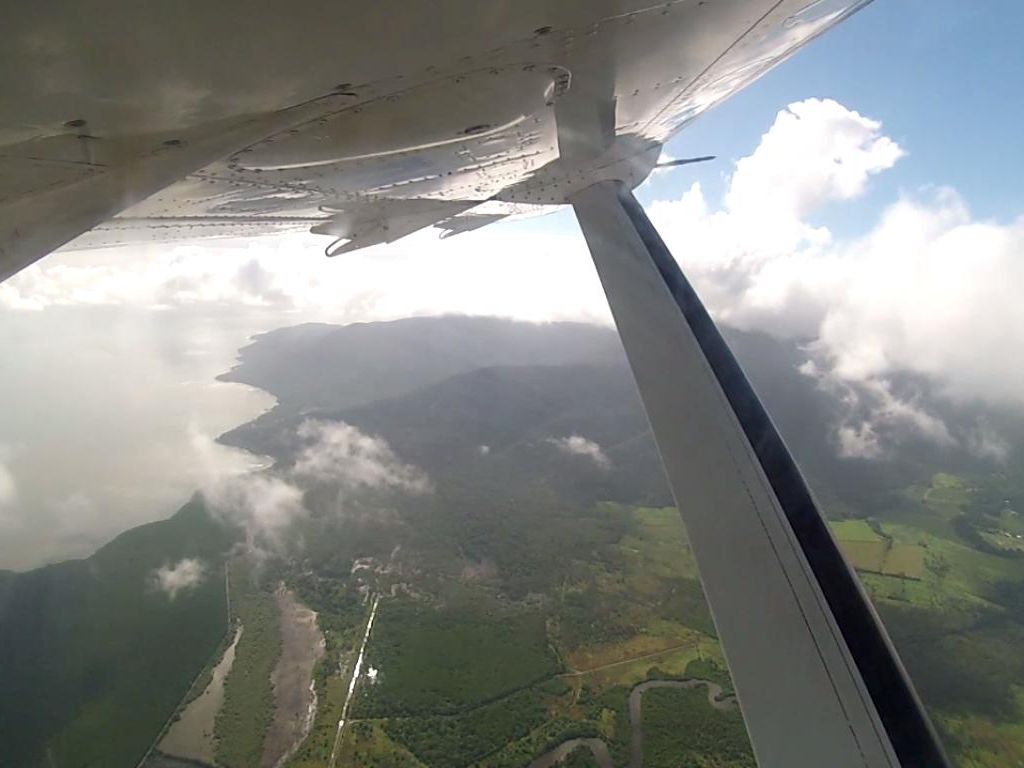 空港からは小さな飛行機で空へ向かいます。結構ぎゅうぎゅう詰めだし、バディと私とをつなぐベルトが体を締め付けているので若干気持ち悪くなりました。