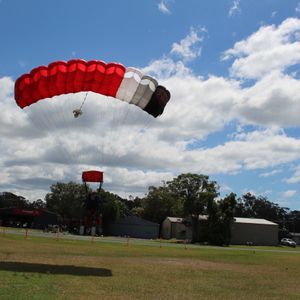 色々なロープやベルトなどを装着して、簡単に説明をされ小型のヘリに乗り、私は一番最後に乗ったので窓側でした。窓といっても薄いビニールのカーテンのようなものなのでものすごく怖かったです。上昇し海の上を飛んでる時クジラやイルカを見ることができました。ヘリの入り口側は怖いですが一番いいポジションです。飛ぶ準備ができゴーグルを付け窓が開き、当然入り口側なので一番初めに飛びました。ヘリから出たすぐはジェットコースターのような感覚で、5秒くらいで、その感覚は消え恐怖などもなく、ポージングできるまで余裕でした。すぐにパラシュートが開きパラシュートでコントロールしたりして遊んでました。空の上から見るバイロンベイはすごく綺麗で涙が出そうでした。スカイダイビングは、人生で1度はしたほうがいいと思います。