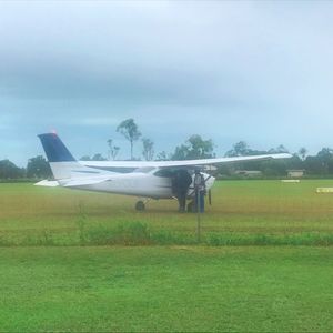 車で飛行場まで移動し、降下可能高度まで飛行機で浮上、再度説明を聞いたら上空からスカイダイビングで降りてきます。