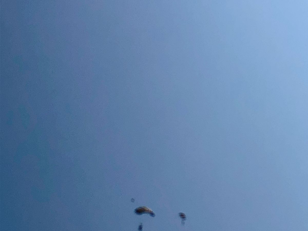 飛び降りてすぐに1回目、パラシュートが開いて地上に降りていく時に2回目。