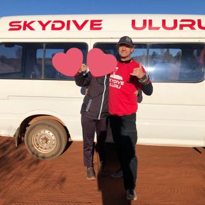 Thank you for your lovely review. As Uluru is a very remote area with restricted phone coverage we tend to worry when our passengers are late. We are glad you were all safe amd honored to have taken you skydiving. Safe travels and blu skies!