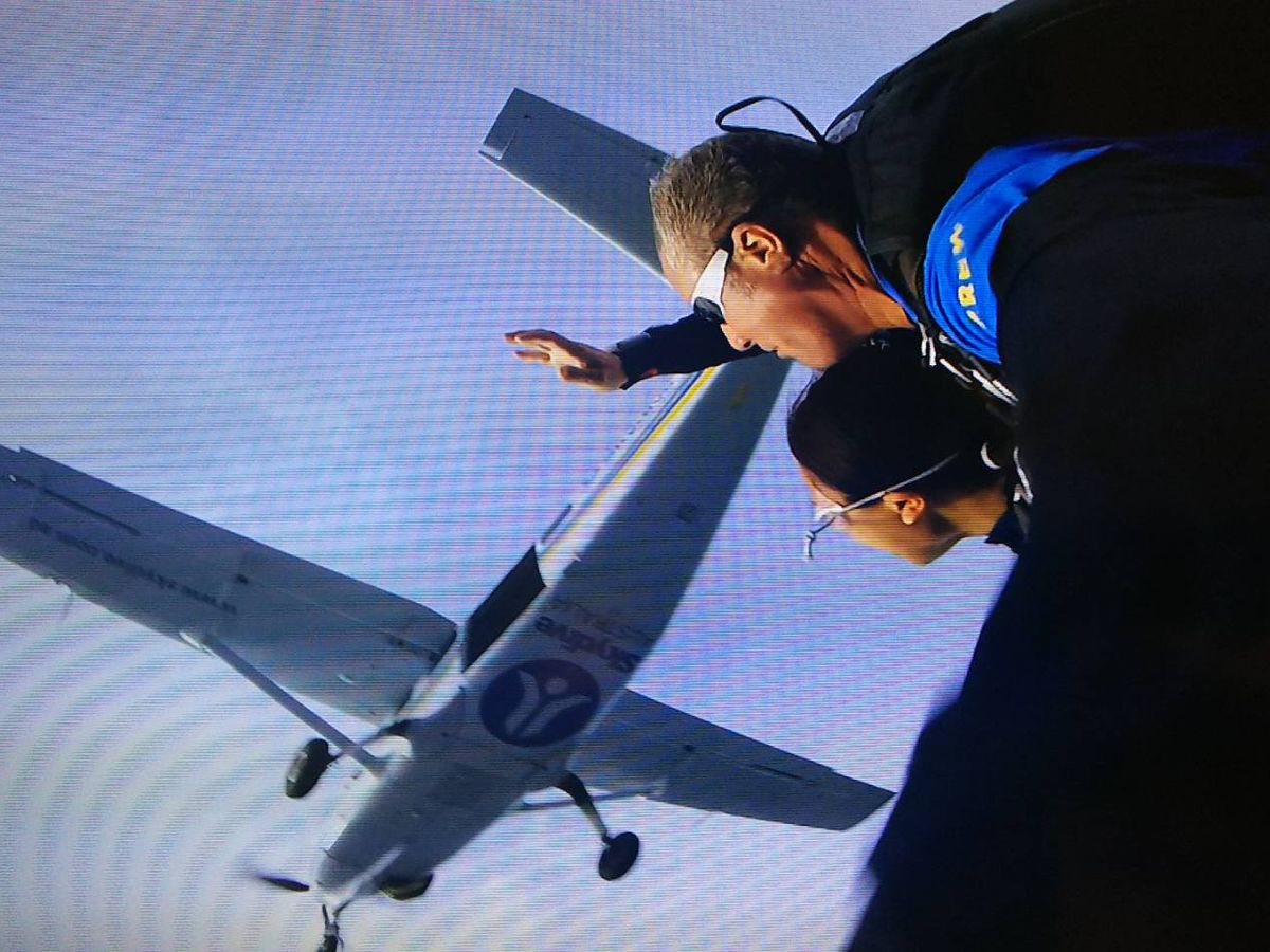 オプションでビデオ撮影をつけたので、飛行機に乗る前から撮影してくれ、またタンデムのパートナーのインストラクターとの会話のきっかけにもなりました‼