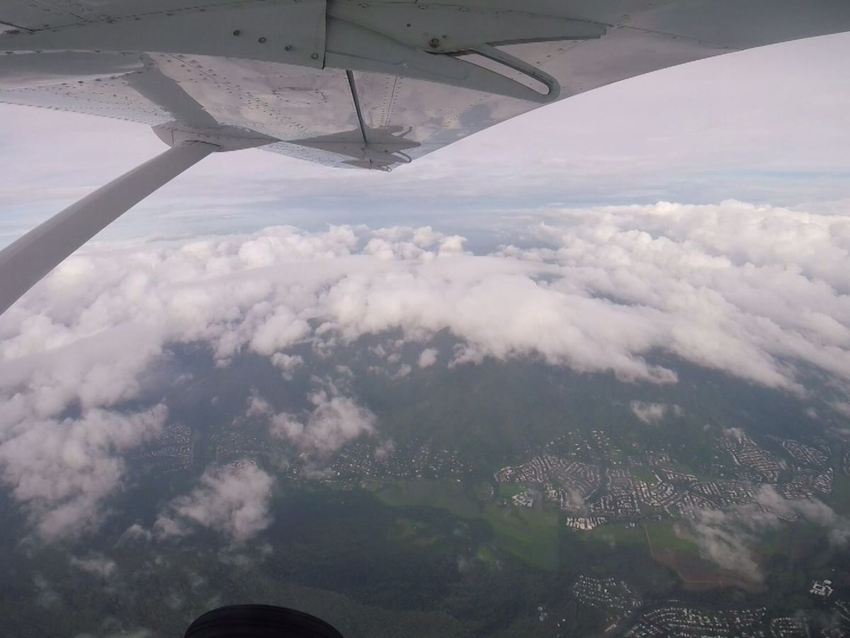 当日、ケアンズ市内のオフィスに集合し、マイクロバスで一時間ほどかけて飛行場に移動しました。実施前にiPadで名前など入力するので簡単でした。服装は短パンでしたが、短パンの上から履けるズボンを貸し出してくれます。ビーチ着地の予定でしたが、天候の関係で飛行場への着地でした。