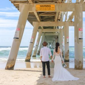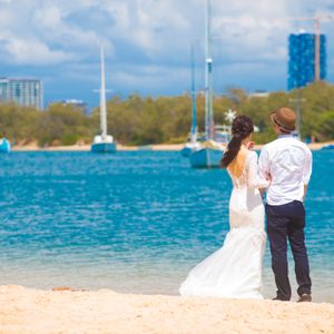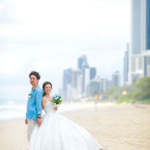 ゴールドコーストのビーチでウエディングフォトを撮ることを決めてから、日本人カメラマンと日本人ヘアメイク、ドレス持ち込みを条件に探していたところこちらを見つけました。大手や老舗ではドレスレンタル込みだったり、見積額に納得できない部分があったりしたので、問い合わせ対応も丁寧だったSASA Bridalさんにお願いすることにしました。出発前の準備にあたって細かいことも相談にのっていただけました。