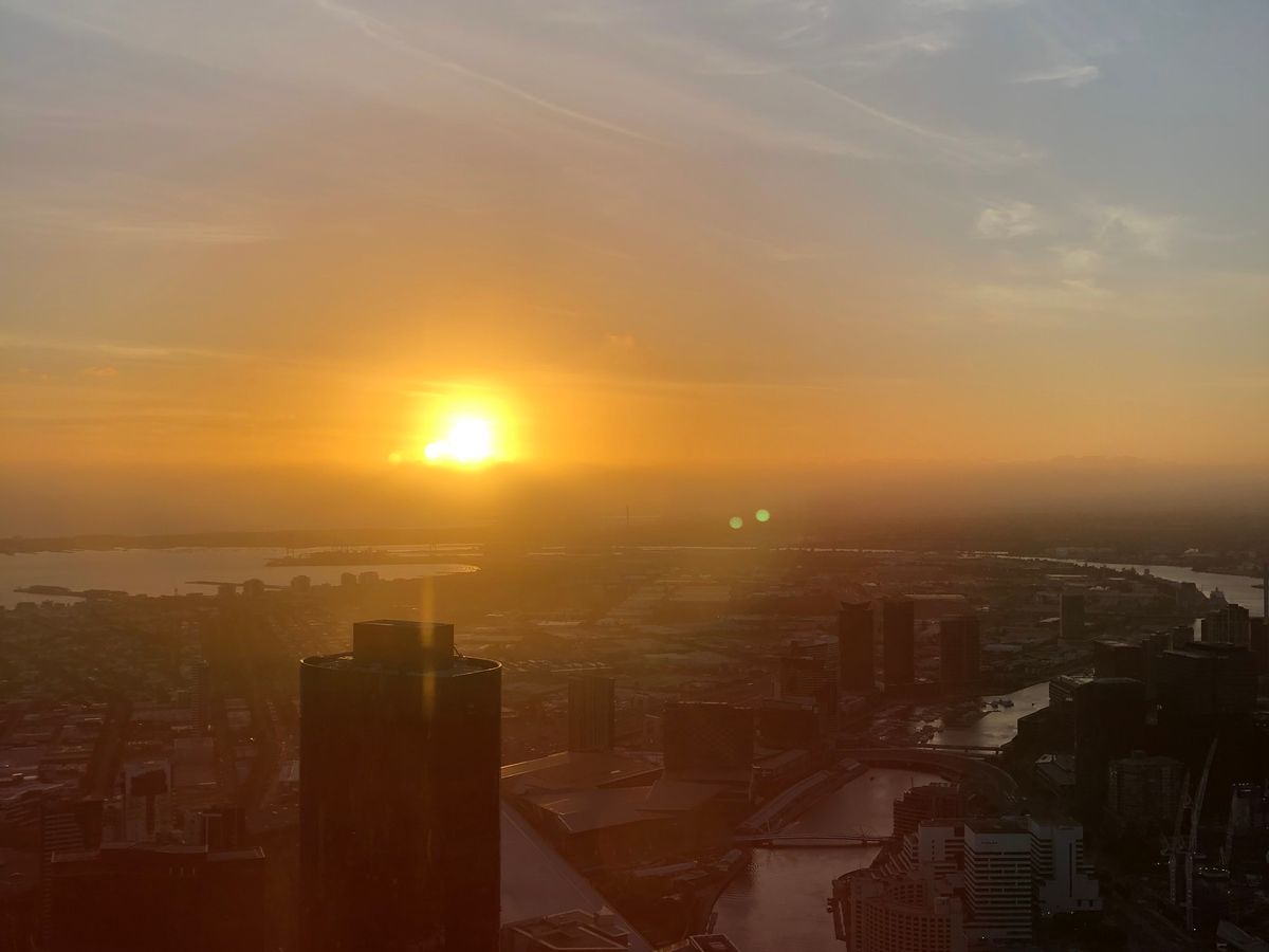 メルボルン到着日の日没近くに展望台に到着しました。夕日に照らされたメルボルンの街を眺めながらワインを飲みリラックスしたひとときを過ごせました。