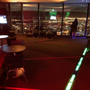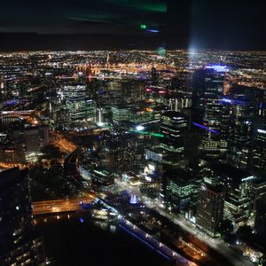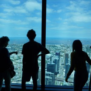 エレベーターに乗ってタワーの88階に上がると360度のメルボルン市内の光景が広がります。ザ・エッジに行かれる方は、チケット引き換えの際に受け取った呼び出しベルが鳴ったら、ザ・エッジのブースに移動します。ここで、靴の上から黒い滑り止め靴下を履き、手荷物をすべて置いてザ・エッジの中に入ります。ザ・エッジ内では写真・ビデオ撮影はできませんが、係の方が記念写真を撮ってくれるので、あとで写真とデジタル写真のデータの両方を15ドル程度で購入できます。ザ・エッジはユーレカ・タワーから拡張する際に少し動きますが、床を含めそこから見える景色は絶景です!