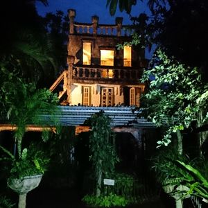 パーク到着後、いよいよガイドさんと一緒に散策開始です。熱帯雨林の一部がパークとなっており、かつて使用されていたお城の一部や、迫力満点の滝などをガイドさんと一緒に見て回りました。パーク内の至る所に、建設者であるパロネラさんのロマンチックなこだわりが感じられました。また、当日は運良く晴れて星空も見ることができ、お城のライトアップと相まってとても幻想的でした。散策終了後、ドリンクのおもてなしがあり、素敵なプレゼントも頂きました。