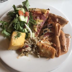 レストランまでは約1時間半かかりましたが、ガイドさんが、バスから見える風景についての様々な豆知識をお話ししてくださりました。そのおかげで、移動中も楽しく、あっという間にレストランに到着しました。夕食はイタリアンビュッフェスタイルのお店で、様々なパスタやピザ、デザートなど美味しく頂きました。